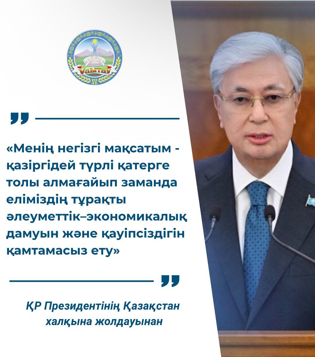 Мемлекет басшысы Қасым-Жомарт Тоқаев Қазақстан халқына арнаған Жолдауында: