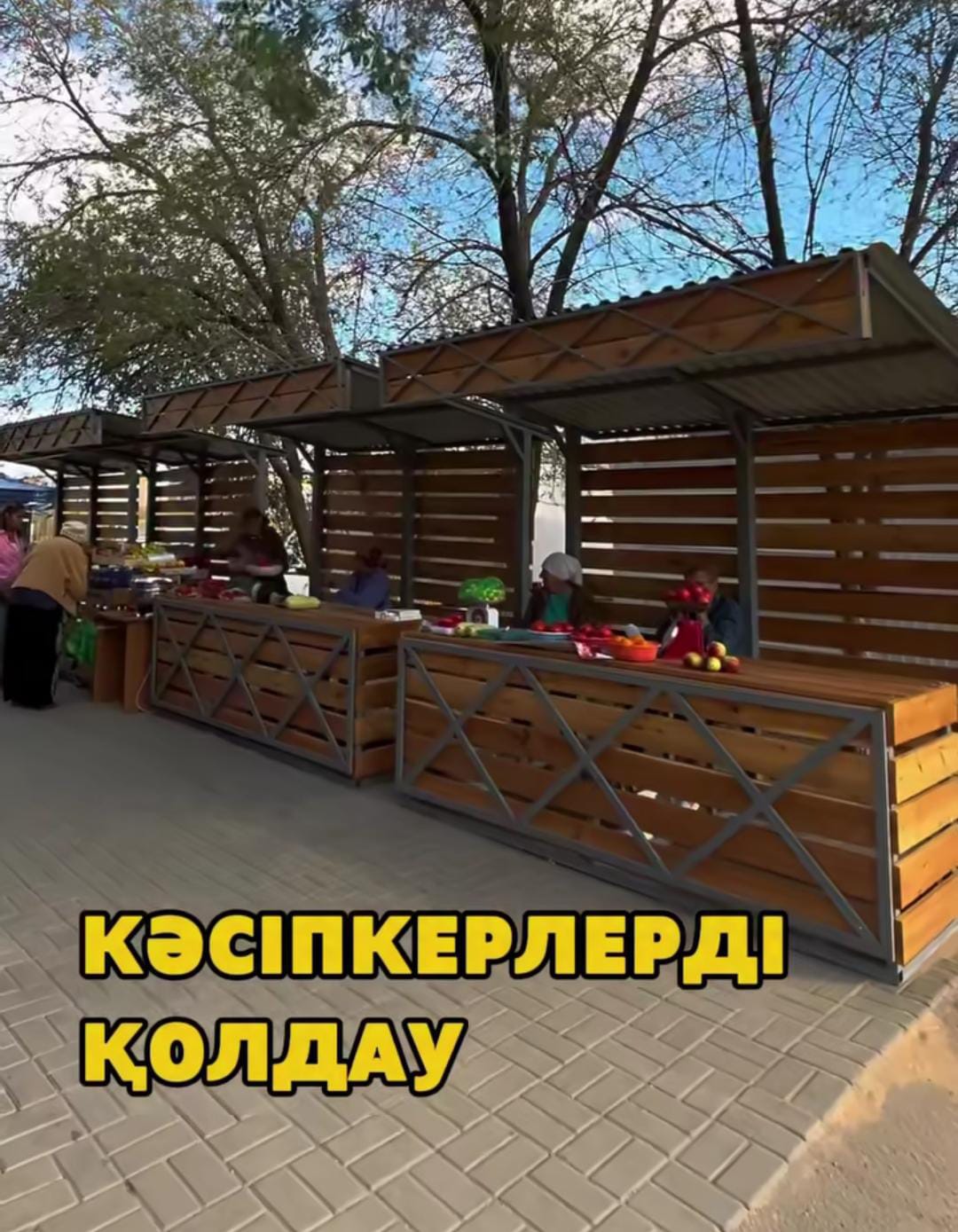 Ағымдағы жылы бұл орындарда стационарлық сауда сөрелерін орнату жұмыстары жүргізілді. Барлық нысандар эскизге сәйкес дайындалып, қаланың сәулеттік келбетіне үйлесімді жасалды. Мердігер ұйым – ЖК «Даулет». Келісім-шарт бойынша жұмыстардың мерзімі 15 тамыз болып белгіленген, барлық монтаждау процесі Кәсіпкерлік және ауыл шаруашылығы бөлімінің басшысы мен мамандарының күнделікті қадағалауында болды.