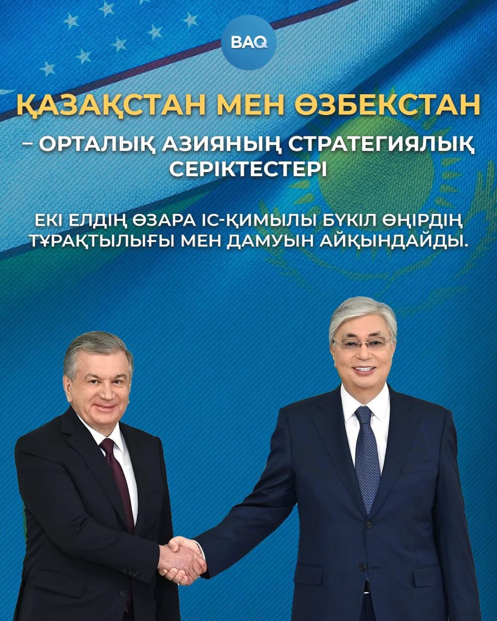Қазақстан мен Өзбекстанның үйлесімді және тұрақты әріптестігі бүкіл өңірдің дамуына оң әсер етеді. Екіжақты келісімдер мен ортақ бастамалар аймақтық тұтастықты нығайтып, жаңа экономикалық мүмкіндіктер қалыптастыруға мүмкіндік береді.